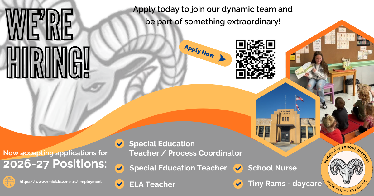 The Renick R-V School District has adopted policies which affirm its compliance with applicable status regarding nondiscrimination on the basis of race, color, national origin, ancestry, religion, socioeconomic status, marital status, sex, age or handicapping condition. The institution is therefore in compliance with the Title IV of the Civil Rights Act of 1964, Title IX of the Education Amendments of 1972 and Section 504 of the Vocational Rehabilitation Act of 1973. Any person having inquiries concerning Renick R-V School District's compliance with regulations implementing the acts listed are directed to contact the Title IX Coordinator, Mr. Kody Simmons at ksimmons@renick.k12.mo.us, 101 Middle Street, Renick, MO 65278 phone (660)-263-4886, who has been designated to coordinate the institution's efforts to comply with these regulations. Any person may also contact the Assistant Secretary for Civil Rights, U.S. Department of Education regarding compliance activities.